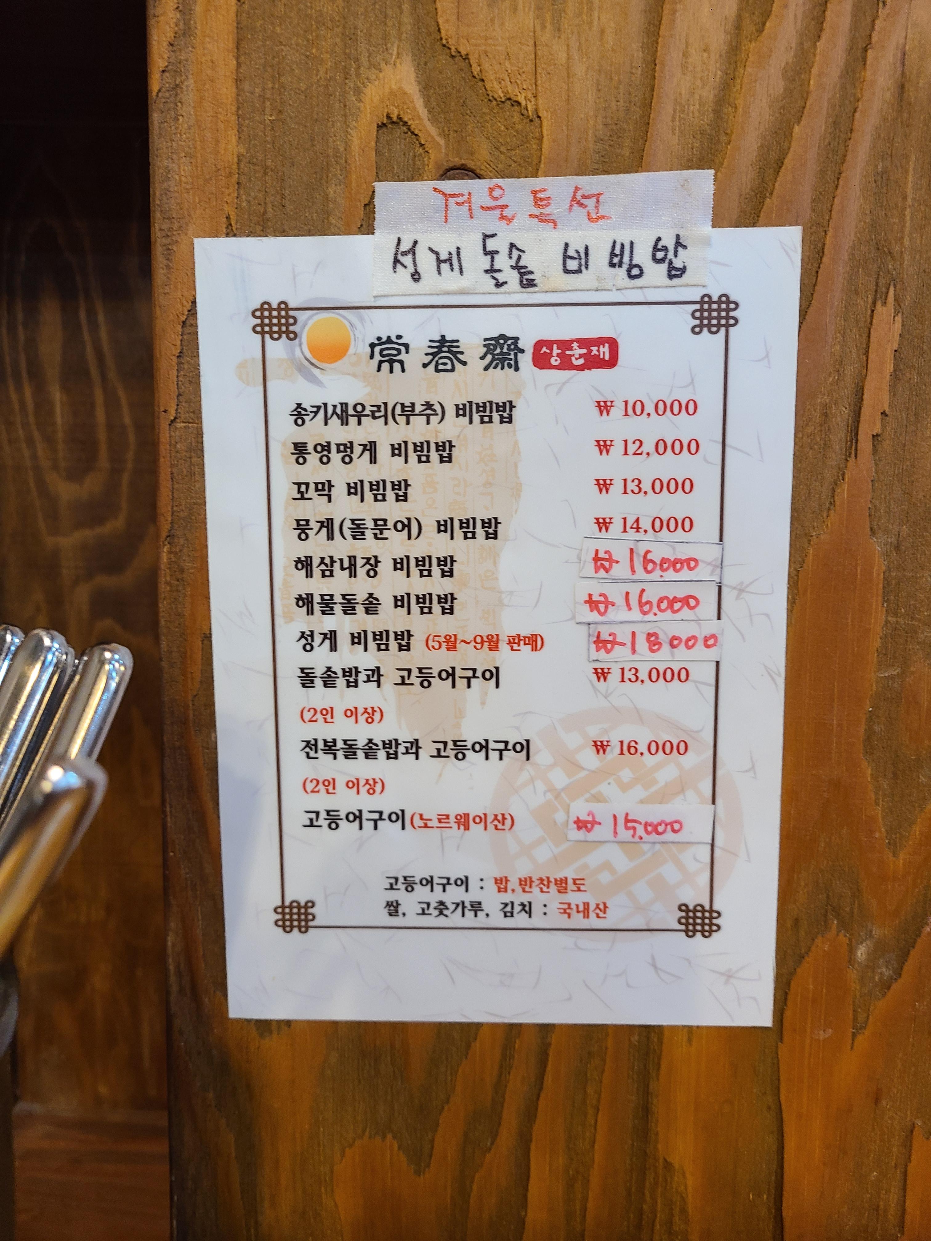 그래서 저와 돼순이는 상춘재 멍게비빔밥, 상춘재 뭉게(돌문어) 비빔밥을 하나씩 주문했어요!